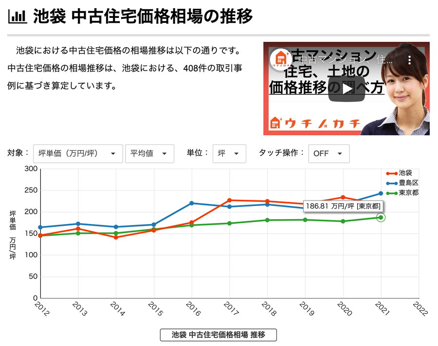 「ウチノカチ」では、築年数や面積、駅からの距離などの項目から対象の家賃相場・価格相場の推移が簡単に確認できる。