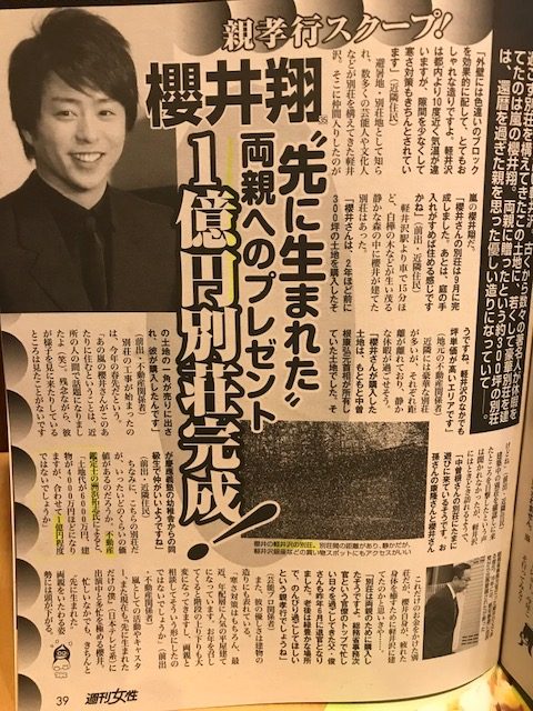 2017.11.7 週刊女性 「嵐・櫻井翔の別荘」の価格評価のコメント
